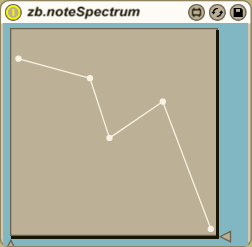 | Description: | zb.noteSpectrum deterministically assigns a velocity to each different MIDI pitch based on the breakpoint function view. This essentially alters the spectral balance of the MIDI material based on the note numbers. The horizontal and vertical axes represent pitch and velocity respectively. |