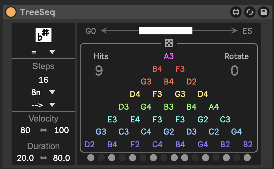| Description: | 1.6 Ui tweaks nothing fancy. 1.5 Push3 Standalone compatible ,Added Random Velocity and Duration range 1.4 Scale is reflected on the display 1.3 --BugFix 1.2 --Changed the Scale system to work better with Live 12, instead of Chromatic it can now just be turned off by clicking Scale. TreeSEQ is an 8 step sequencer with a randomization range and Euclidean gates. Step 1 has 1 fixed note choice Step 2 has 2 random note choices Step 3 has 3 and so on through step 8. It has Scale Quantizing with all available scales from Ableton. -Ableton 11 only- The scale will stay in sync bidirectionally with the current scale chosen in Live via a Push2 or a midi clip. I haven't tested it on earlier versions of Live so I'm not positive if it will work as expected, for sure the scale syncing only works on Live 11 but I believe everything else should work on older versions. 1.1 Update fixing Live Themes Problem If anyone has any suggestions or tips I'd love to hear them. |