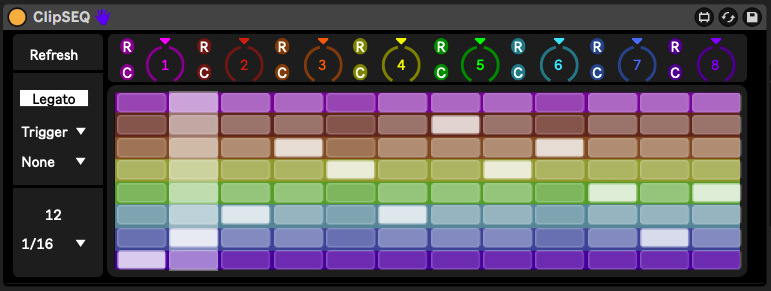 | Description: | 1.1 -Live 12 compatibility ClipSEQ is an up to 16 step sequencer that when "refreshed" will sync each colored row with a matching clip on an audio track. It works with a max of 8 clips and will adjust to correctly color code any amount 1-8 so it's easy to see what you're controlling. If you swap, add or remove clips after it's loaded make sure to click "refresh". It has controls for setting Legato, Launch Mode and Launch Quantization for all the clips at the same time. It also has controls for the sequencer Rate and steps. Along the top are dials controlling the pitch of the 8 clips. By pressing "R" you can enable recording, when you move the dial it starts and when you stop moving the dial it begins playback. Pressing "C" clears the recording. I made this for making new loops more so than sequencing in the traditional since. Drum breaks were my initial use case but it's pretty fun to throw random melodic or noise loops in the mix too. It will save the steps with a Live Set but not the pitch"automation" so remember to resample if you find something you like. Any tips or suggestions are always welcome,Thanks I haven't tested with other versions of Live so I'm not sure it will work on versions other than 11.1 |