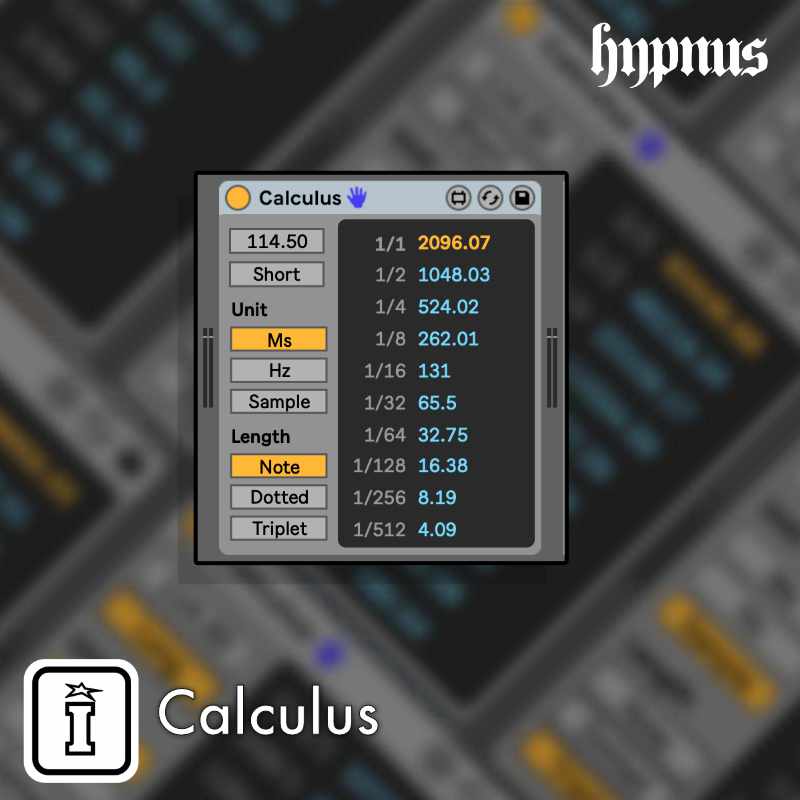 | Description: | CALCULUS Calculus is a Max for Live device which helps you calculate note lengths in milliseconds, Hertz and samples based on your project’s tempo. This is helpful when working with effects units and instruments which do not provide synced settings or if you want to add more complexity to your settings by introducing dotted or triplet values. Reverb pre-delay and decay, phaser modulations, delay time, LFO cycles and compression release are just some of the powerful parameters which could provide musical and interesting results with the help of this tool. Main features and functions Calculates note lengths based on your project’s tempo Results can be displayed as milliseconds, Hertz or samples Full notes, dotted and triplet values are available Ranges from 512/1 to 1/512 Calculus was created by Hypnus Records in Association with Chaos Culture |
