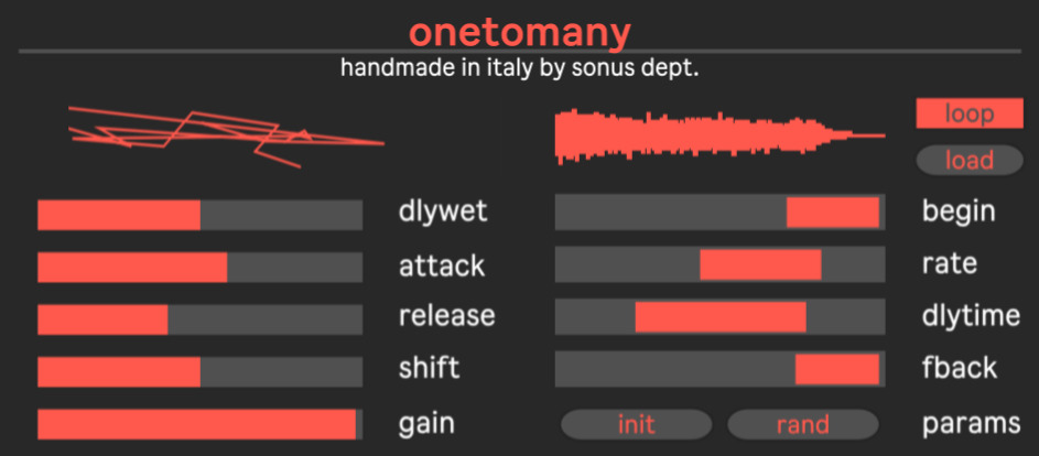 | Description: | OneToMany is a 32-voice sample player that changes its parameters every time it is triggered, so that from a single sample a whole range of barely predictable sounds can be obtained. |