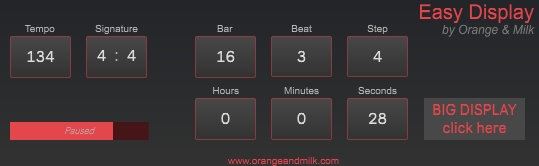 | Description: | Transport, tempo & timing display. With optional big display in a second pop-up window. FREE ! |