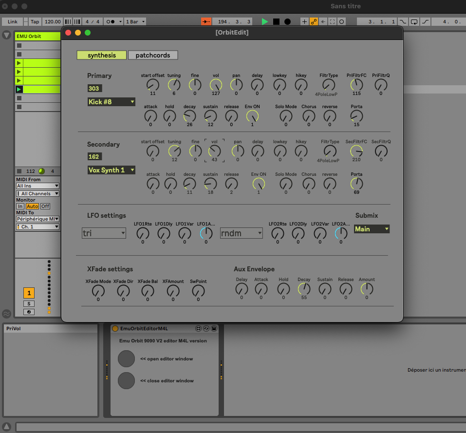 | Description: | Max For Live version of a EMU Orbit Editor I made in Max a while ago. I made a M4L version after receiving several requests to do so. The EMU is limited, it's a pain to edit. I chose to make a floating window. Feel free to modify it as you want. |