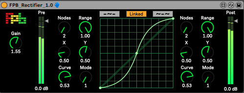 The Fingers Push Button Rectifier takes incoming signal in frames and passes them through a conversion table in real time to create rectified signals. The most common use of this kind of tool is to create overdriven/distorted versions of the input signal but it has wider applications too.