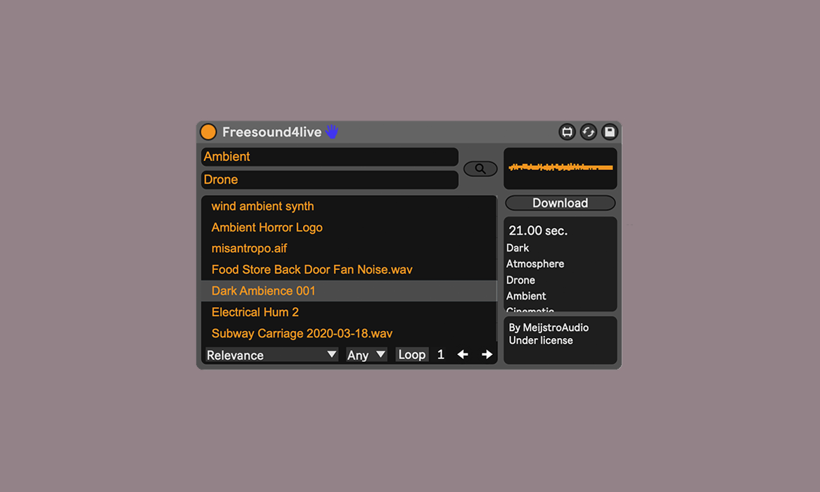 | Description: | Browse, search, listen and download sounds from Fressound.org without leaving Ableton Live! After many years, a new update for Freesound4live is available for download! The new update features a revamped interface that is more user-friendly and elegant. I have also solved many bugs that appeared over time, which will ensure that Freesound4live runs nice and smooth. One of the most significant changes is that I have rewritten the entire code. This was a massive undertaking. I am releasing this update as a precursor to the release of new features later this year. I am confident that these new features will add even more value to your music production and will give you more desire to discover and play with new sounds. Gumroad: https://aylesim.gumroad.com/l/uCjmd Isotonik Studios: https://isotonikstudios.com/product/freesound4live-by-alessandro-aylesim-miracapillo/ |