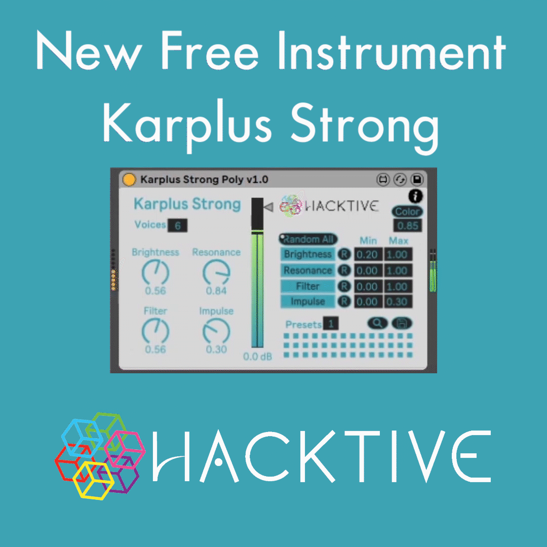 | Description: | New FREE Instrument! Demo: https://youtu.be/dhsFy-sFU7U Karplus–Strong string synthesis is a method of physical modelling synthesis that loops a short waveform through a filtered delay line to simulate the sound of a hammered or plucked string or some types of percussion. Alexander Strong invented the algorithm, and Kevin Karplus did the first analysis of how it worked. Together they developed software and hardware implementations of the algorithm, including a custom VLSI chip. They named the algorithm "Digitar" synthesis, as a portmanteau for "digital guitar". This device was made following the tutorial "Delicious Max/MSP Tutorial 1: Karplus-Strong" by our good buddy Sam (dude837): https://youtu.be/5RYy8Cvgkqk Noise Garden: https://noisegarden.gumroad.com/ https://www.instagram.com/noisegarden.music/ https://www.tiktok.com/@noisegarden.music https://www.youtube.com/@noise_garden MAFO: https://www.youtube.com/@mafowav https://www.tiktok.com/@mafo.wav https://www.instagram.com/mafo.wav |