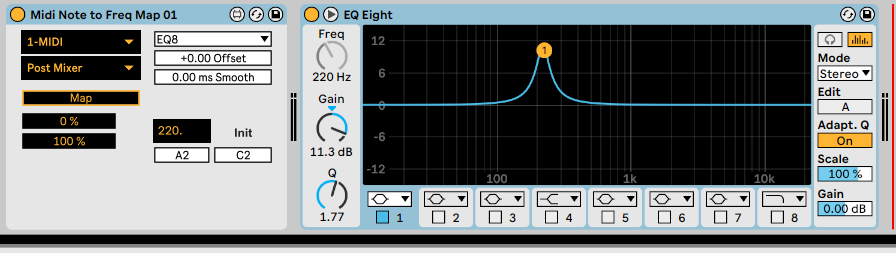 | Description: | Map Midi Note to Frequency of Vulcano, Supermodal, EQ8. |