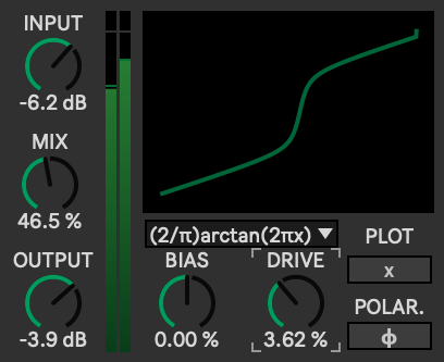 | Description: | B-314 is a clipper :) So this is the device I alluded to upon the releases of _Trans_N (Omega-N Neve console clone) and Cambridge Bloatationizer (Oxford Inflator clone). This can do both of those easily, and a lot more. It is perhaps most similar to FreeClip, or perhaps Ableton's Saturator. It does what it says on the tin, and I intend this to be a useful distortion utility, but also a learning tool. There are no misleading claims about the magical algorithms used inside... this is straight forward stuff, and my aim here is to make it easy to understand and visualize. A waveshaper, in essence, is a function that maps an input amplitude ( usually between -1.0 and +1.0) to an output amplitude. The visualization plot can be toggled between showing the waveshaper function itself (using the input signal "x") or its affect on a sine wave. Of course, your audio will likely be much more complex than a sinewave, but this is a great starting point to understand what it is doing. The left meter shows the level after the input gain, and the right meter shows the level after the output gain. This way, they can be easily matched, with the output trimmed so that there is no jump in level upon bypassing. The bias is applied after the input gain (even harmonics), and before the "drive" gain, which is your main control of the distortion level. I suggest setting your input gain appropriately first, then tuning your sound (choose algorithm, balance it between drive and mix knobs), then adjusting output gain so that input and output levels are roughly equal. The "phase" parameter flips the polarity of the waveshaper signal, which I found to be particularly useful when emulating different types of crossover distortion: tanh(), medium drive, low mix, and toggle the polarity to see too "modes". To get emulate the "Neve" style console preamp sound, use tanh() at a very low mix (~4%) and higher drive settings. The sin() waveshaper can model the "Oxford Inflator" if the drive is at 1% (unity)... the effect intensity is controlled with the mix knob. |
