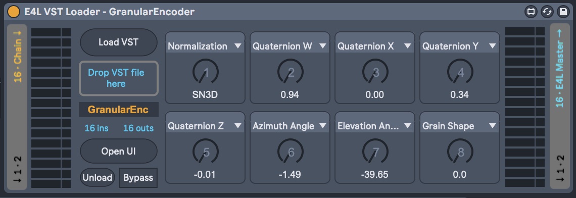 | Description: | For use with Envelop For Live, this device serves as a wrapper for loading multichannel ambisonic 3rd order VSTs. You can now add 3rd party ambisonic (spatial audio) effects into your E4L chain. Version 1.12 fixes bug where input/output values were not showing properly when opening a saved Live set. https://envelop.us/page/software The device provides 8 knobs that can be assigned to any of the parameters in the VST, and those knobs can then be controlled by automation in Live. You can also open the plugin's user interface and make adjustments there. Note: This device has not been tested with every multichannel VST. Max currently has issues initializing a proper channel count with some VST3 plugins. |