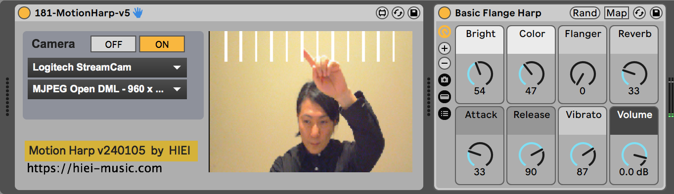 | Description: | It is a device that plays a harp in space using a webcam. After inserting this device into a MIDI track, please insert your preferred instrument. White lines will appear at the top. When you touch these lines, MIDI will be outputted. 24_0115 v1.1 Release Fix the problem where lines are not displayed. |
