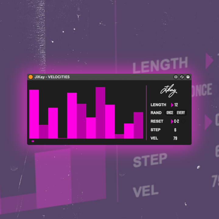 | Description: | VELOCITIES is a Max For Live step sequencer that replaces incoming midi velocities with those set by the sliders. The step sequencer is not tied to the clock but advanced per note and can also be reset with a definable midi note for more control. You can mute individual steps by setting them to zero. Using different step lengths can create polymetric patterns adding interest to loops meaning they won’t repeat in the same order for many bars. It’s possible to randomise the sequencer per click or every time the sequencer loops to create unexpected outcomes. VELOCITIES works great on rhythmic patterns such as hi-hats or percussion to add extra variation. It is also great for arpeggiated patterns and melodic leads to add more variation and humanization. |