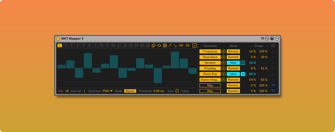 MIDI key triggered mapper and CC sender. Each time a MIDI no...