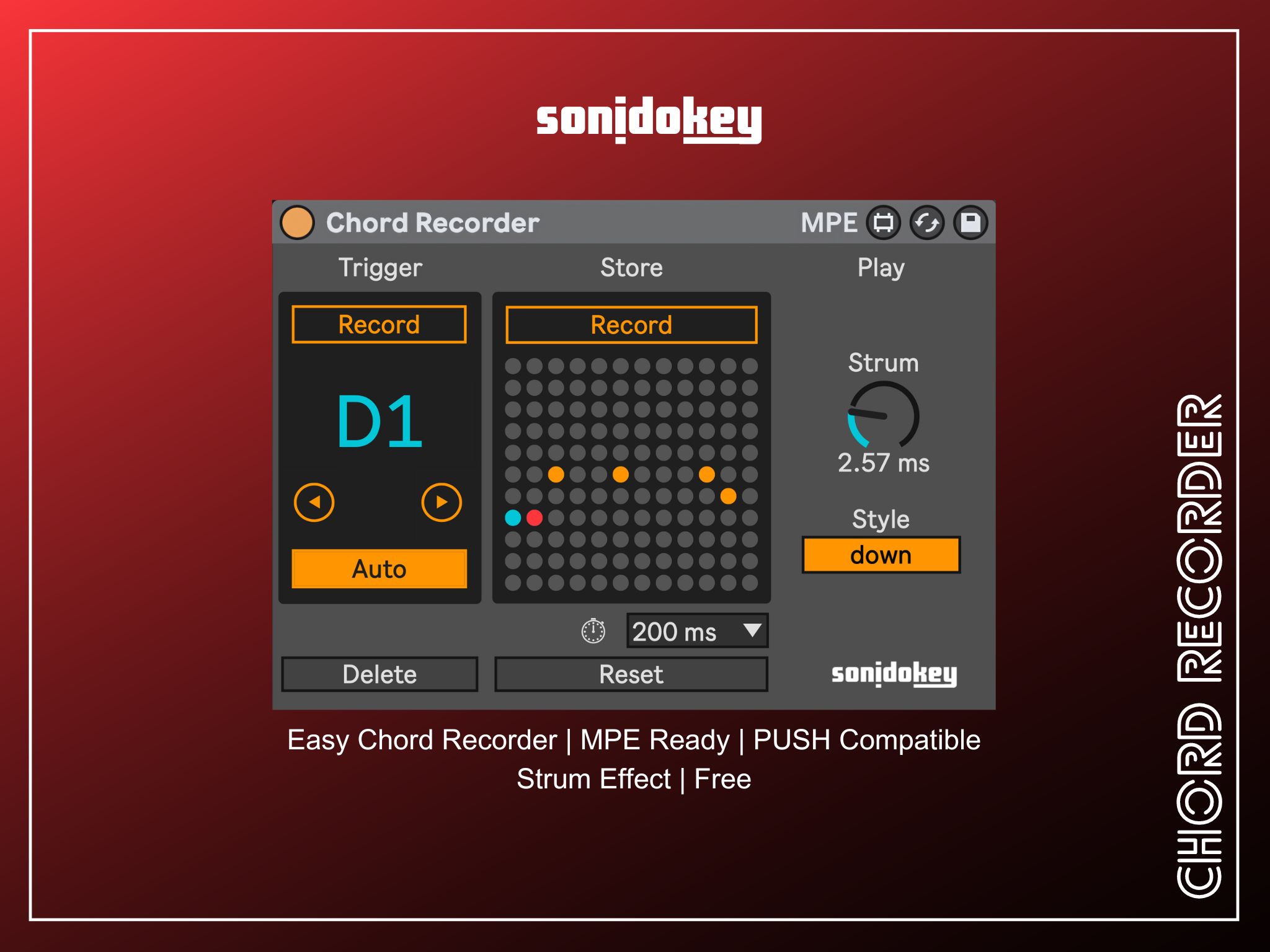 | Description: | Chord Recorder: An intuitive chord recording tool – fully compatible with Ableton Push. The Chord Recorder is a simple yet powerful Max4Live device designed for musicians working with Ableton Push. It allows you to effortlessly capture, store, and replay chords with just one click, making it perfect for spontaneous creative sessions or structured music production. -> Why Chord Recorder? Have you ever discovered the perfect chord and wished for an easy way to save it immediately? That’s exactly why the Chord Recorder was created. Whether you're experimenting in your studio or performing live, the Chord Recorder seamlessly integrates into your workflow, letting your creativity flow without interruption. -> Features Effortless Chord Recording: Play a chord, press a button, and your chord is saved – simple and efficient. Automatic Trigger Setup: With the "Auto" mode, you can quickly assign multiple chords in sequence without disrupting your workflow. Dynamic Strumming Effect: Add rhythmic expression with a strum effect. Adjust speed and choose the strumming direction (up or down). Visual Feedback: The matrix view provides a clear overview of which triggers are mapped with chords. Push Integration: Designed specifically for Ableton Push, it feels like a natural extension of your device. Save and Reuse: Store your chords and reuse them in other projects or live performances. Your chord progressions become part of your creative toolkit. -> How to Use 1. Select a Trigger In the Trigger section, select the note that will trigger your chord. Use the small arrow buttons below the note display to adjust the trigger note. Alternatively, press the “Record” button in the Trigger section and play a note on your Ableton Push, MIDI keyboard, or any MIDI controller. The note you play will automatically be set as the trigger. Activate the “Auto” button to automatically move to the next trigger after assigning a chord. This is ideal for capturing several chords in a row. To delete the currently selected trigger, press the “Delete” button. 2. Record a Chord To assign a chord to the selected trigger, press the “Record” button in the Chord section and play the chord on your Ableton Push, MIDI keyboard, or any MIDI controller. After playing the first note, you have 200ms to complete the chord. If your chord is more complex, you can extend this time to give yourself more flexibility. 3. Play the Chord Once a chord has been successfully assigned to a trigger, you can play it by activating the trigger note. In the Play section, you can add a Strum Effect to your chords. This creates a staggered playback of notes, similar to strumming a guitar. Use the knob to adjust the speed of the strum effect. With the “Style” button, choose the strum direction: “Up” (low to high notes) or “Down” (high to low notes). The Chord Recorder is your perfect companion for intuitive chord creation, whether you're improvising or composing. With seamless Ableton Push integration, this device makes your musical ideas flow effortlessly. Download it now and take your music to the next level! |
