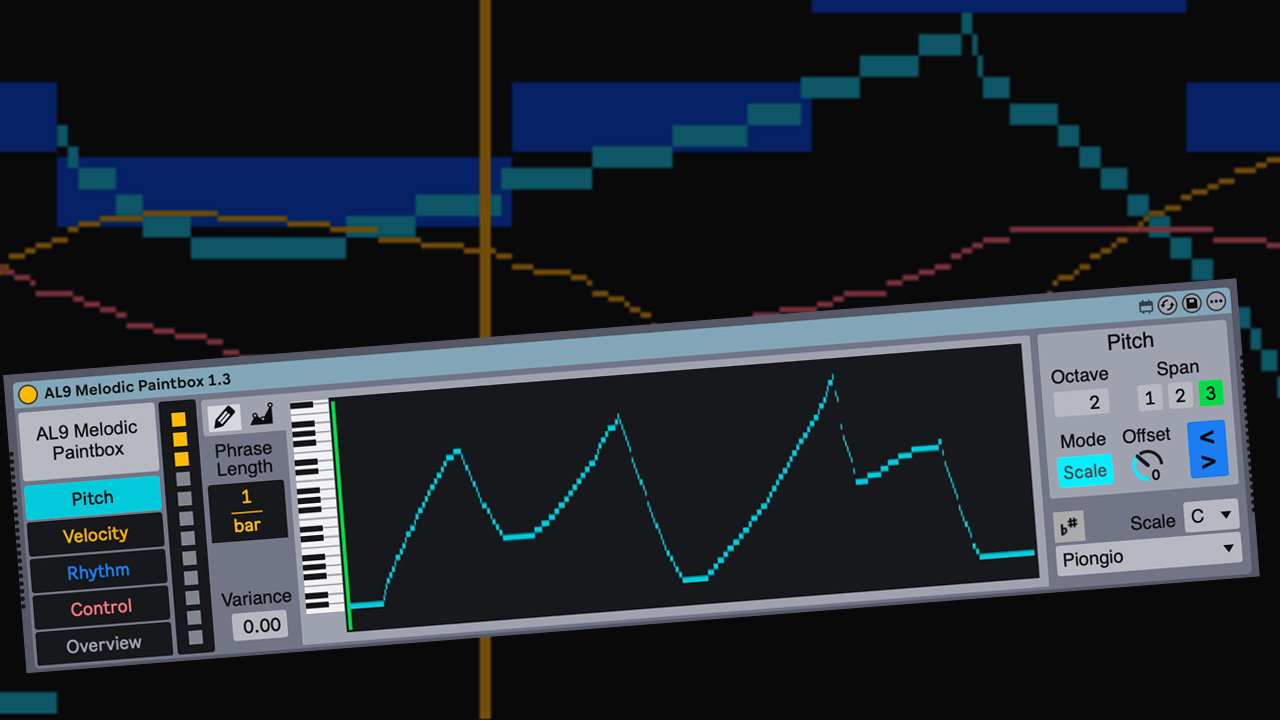| Description: | 𝗔𝗟𝟵 𝗠𝗲𝗹𝗼𝗱𝗶𝗰 𝗣𝗮𝗶𝗻𝘁𝗯𝗼𝘅 𝗚𝗿𝗮𝗽𝗵𝗶𝗰𝗮𝗹 𝗦𝗲𝗾𝘂𝗲𝗻𝗰𝗲𝗿/𝗔𝗿𝗽𝗲𝗴𝗴𝗶𝗮𝘁𝗼𝗿 Melodic Paintbox lets you draw your sequences instead of program them. The drawn sequence graphically represents a melody or musical phrase. This sequencer is not about precise note-by-note sequences, it is about contours and shapes and not-quite-exact repetition. The "grid" model that most sequencers are built on is completely gone from this device. The device achieves that by running a rhythmic clock against a hand-drawn line. The contour of the melody or sequence is independent of the rhythm, so the rhythm can interact with it freely and in many different ways. Melodic Paintbox gives you a new way to create rhythms, completely different from how they are usually built (goodbye, grid!), leading to surprising, out-of-the-box rhythmic phrases that are easy to interact with and sculpt. Take a look at the video overview: https://youtu.be/kR8g24kmu44 𝗙𝗲𝗮𝘁𝘂𝗿𝗲 𝗦𝗲𝘁 • 4 independent tracks for pitch, velocity, control, and rhythm • Each track has its own graphic space where the track's shape can be drawn • The phrase length of each track can be set to even or uneven divisions or multiples of the bar • Pitch track is filtered to a given key and scale or can be chromatic • Arpeggiator mode so the pitch track note selection can be set according to MIDI input • Supports Live 12 Scale Aware • Rhythm track gives you a new graphical way to create rhythmic patterns • Control track maps to any parameter or MIDI CC number • Fully automatable and externally controllable for use in generative music • 12 presets to remember your "paintings" • Includes a detailed, 11-page user guide 𝗩𝗲𝗿𝘀𝗶𝗼𝗻 𝗡𝗼𝘁𝗲𝘀 1.1 Fixes multiple midi notes output when starting transport 1.2 (May 2025) provides several compatibility fixes for Live 12 Adds Scale Aware support in scale mode 1.3 (June 2025) New Diatonic Offset control Range scaling for the control track Several significant improvements to timing New Detailed 11-page user guide |