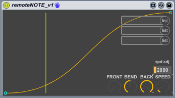 | Description: | Incoming midi notes trigger a curve over time, and controls a devices parameter. I built this as an alternative to sidechaining kicks. However I realized it was more versatile than that. INSTRUCTIONS 1. Insert 'remoteNOTE' as a midi effect any where thats receiving notes. 2. Every time a note is played, the curve gets triggered left to right. FRONT- sets the height of the starting point BEND- inverts curve SPEED- sets the amount of time it takes to pass (when all the way down, the speed is VERY fast) spd adj- when increased, the SPEED knob is adjusted to span over longer times. 3. set your menus to select the parameter you want to modulate. As I said above, I built this for sidechaining the kick. I put this device as the first device in my kick drum cell, I attach it to a macro that is mapped to a utility device's gain, that resides on my synth track. After testing it and making adjustments, I realized I could set it all kinds of ways and control any parameter I wanted. ALSO I dont have to trigger it with drums, I can trigger it with any thing sending midi notes. Right now it's a very simple device and I like that. However any ideas on making it better are welcome. |
