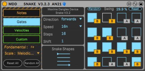 | Description: | *** In english *** First, big up to Maxime Dangles, the creator that share for free his science. I learn m4l that way. That is a version with visual monitoring from a usb device such as a BCF2000. You need to configure your usb device with : CC / val 1 : 127 / val 2 : 0 / toogle on. Map each button of your controller with each gates (blue square) AND "A" / "B" button I made. Run your snake : - it should appears blinking off when the snake eat a Gate ON - it should appears blinking on when the snake eat a Gate OFF Enjoy !! You can also buy me a virtual coffee there : https://buymeacoffee.com/an21 *** En français *** Tout d'abord, gros big up pour Maxime Dangles le createur du serpent qui partage sa science gratuitement. Respect. J'ai ajouté mon grain de sel pour rendre autonome un controlleur sans forcément regarder l'interface de l'ordi. Il s'agit d'une version avec retour visuel depuis un périphérique USB tel qu'un BCF2000. Vous devez configurer votre périphérique USB avec : CC / val 1 : 127 / val 2 : 0 / Toogle on. Mappez chaque bouton de votre usb controleur avec chaque Gate (carré bleu) ET le bouton "A" / "B" que j'ai créé. Exécutez votre serpent en appuyant sur Play : - Ca doit brièvement clignoter OFF lorsque le serpent rencontre une Gate ON - Ca doit brièvement clignoter ON lorsque le serpent rencontre une porte OFF Amusez vous bien !! Vous pouvez également me payer le café virtuellement : https://buymeacoffee.com/an21 |