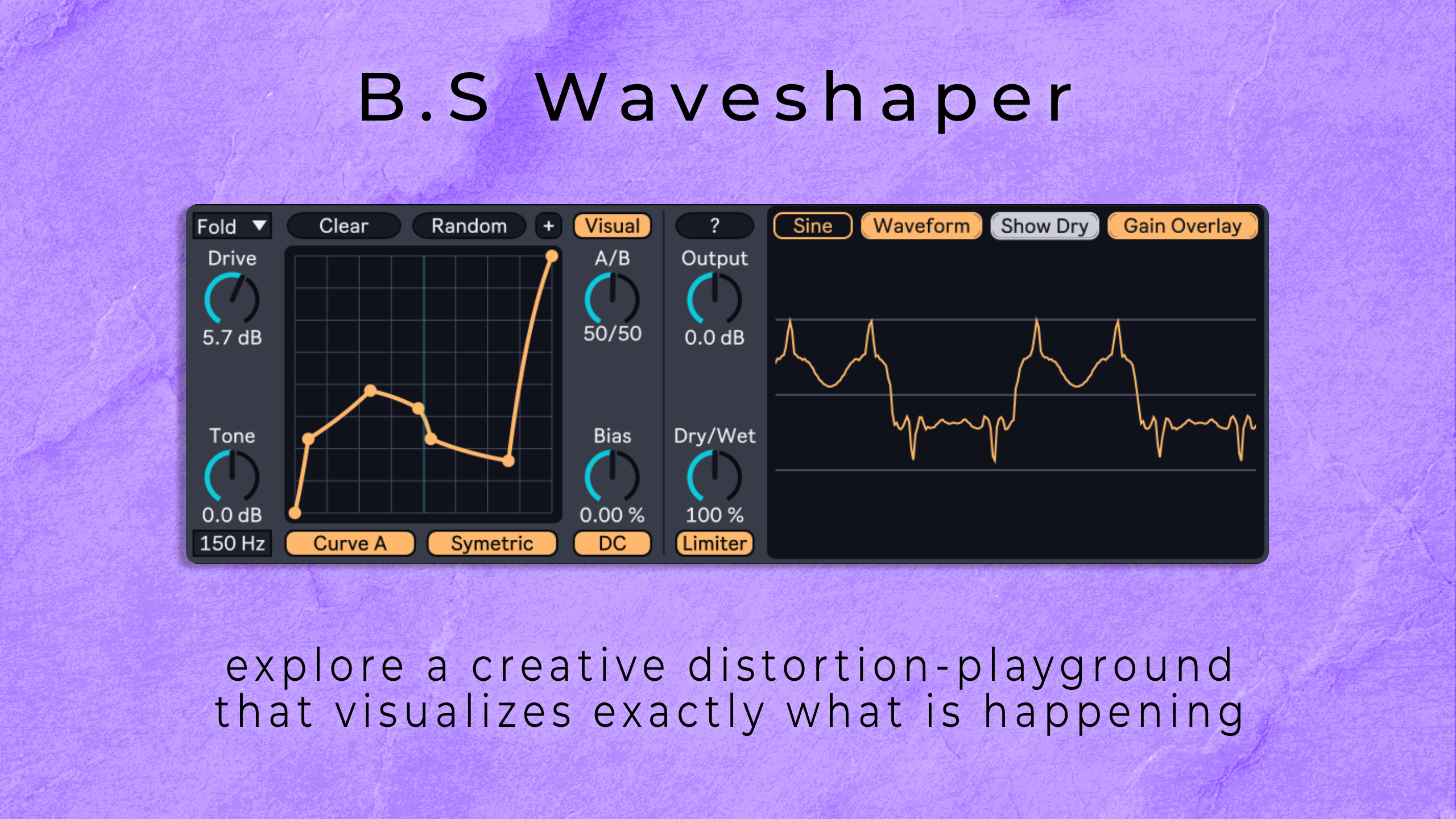 | Description: | B.S Waveshaper is not just another distortion plugin — it's a creative distortion playground designed to push the boundaries of your sound. Built as a Max for Live device for Ableton Live, it fits seamlessly into your setup while offering a unique twist on traditional distortion. Whether you're looking to add subtle warmth or to add bold, characterful effects, B.S Waveshaper offers a unique combination of precision, creativity, and high-quality processing. With intuitive controls and extensive visual feedback, it lets you draw or randomly generate custom distortion curves to get your creativity going. Elevate your productions with a tool that combines artistic freedom with quality engineering. Key Features: -Customizable Distortion Curves: Draw your own curves or generate them randomly using a unique controlled randomization algorithm, surprising you with new, unique curves. - Curve Crossfade: Seamlessly blend between two different distortion curves to add movement and depth to your sound. - High-Quality Processing: Enjoy up to 32x oversampling for cleaner distortion with minimal aliasing. - Symmetrical & Asymmetrical Distortion: Use symmetrical curves for classic distortion effects or switch to asymmetrical curves for a more edgy, harmonic-rich sound. - Versatile Drive Modes: Choose between Clip, Fold, or Wrap modes to determine how the device handles signals that exceed normal levels. - Extensive Visualization: Monitor real-time waveform and frequency spectrum displays, ensuring you always know exactly how your adjustments affect the sound. - Additional Tools: Integrated Tilt EQ, DC Filter, and Safety Limiter provide extra layers of control and protection. Support: For any questions or support regarding the device, please email bsaudiotools@gmail.com. We also encourage you to read the manual before reaching out to ensure you get the most out of your plugin. Happy Music Making! |