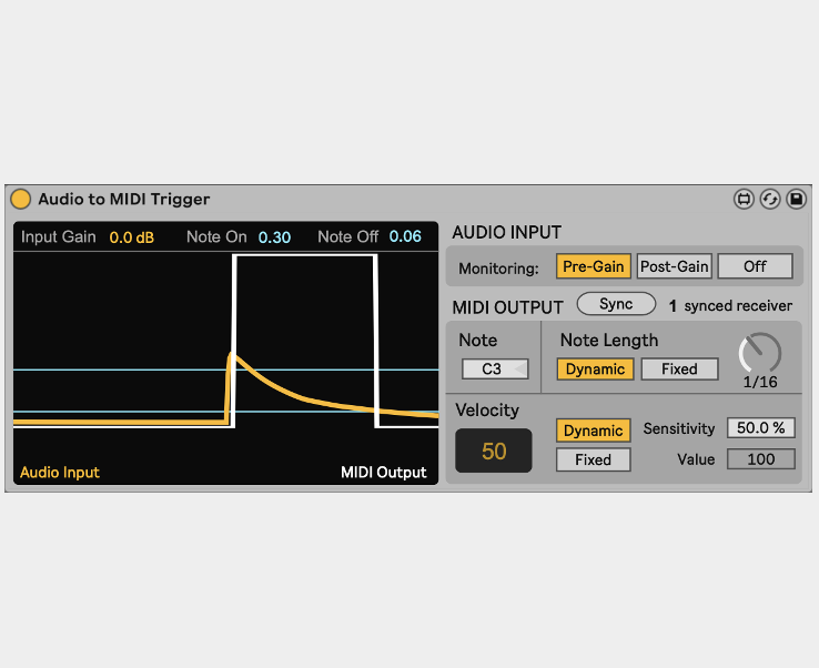 This is a fabulous module! Thank you for making this. To add to the above (I also am encountering the issue with de-syncing upon session reload), it seems that the note-on and note-off thresholds reset to default as well. It would be great if sync and all settings could stay persistent.