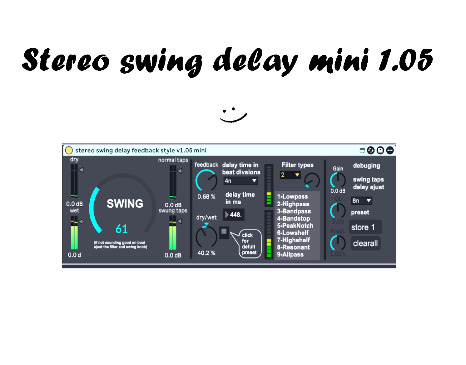 | Device File: | stereo swing delay feedback style v1.05 mini (1.03).amxd |