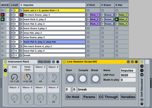 Besides parameters in racks in the track of Live Session Script, parameters in racks in the group track can be automated now. Automation has a lot more power, allowing for real LFO activity, automated by up to 6 arguments.