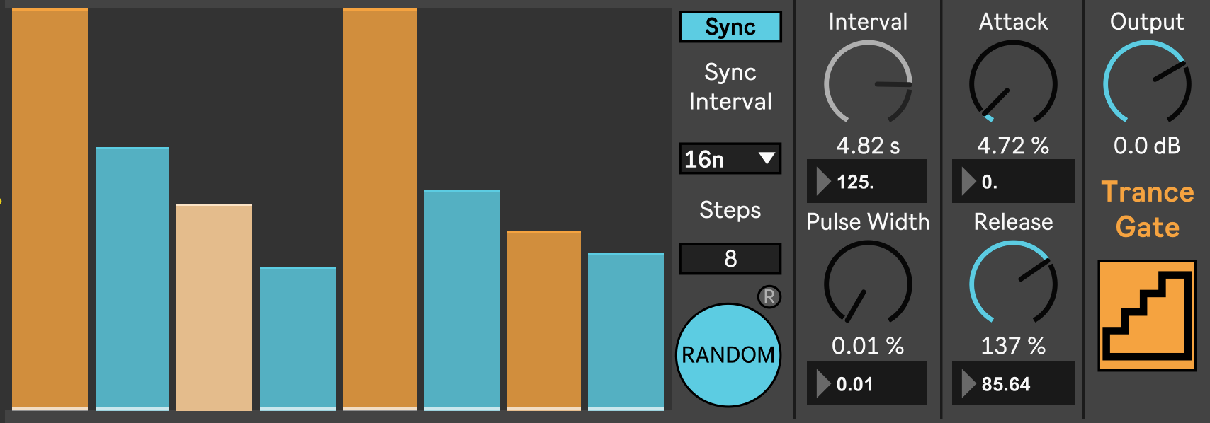 | Description: | This Device is a simplified trance gate that can work between 2 steps and 64 steps. It can be fixed to the grid or run freely. Have fun with it and leave some feedback for future improvements 1.1 update: Added individual attack and release controls, replacing the smooth control Added displays for the pulse width, attack and release times Added an output dial for level adjustment The sliders stay as saved after the project is closed and opened again Ui improvements 1.2 update: Fully synched with Ableton when in sync mode. It's also aware of which step should be synched to, so results are consistant even working with the arrangement view in this mode Retrigger possible when in free mode (non synched). Retriggering resets the sequence to the first step Ui improvements, such as highlighting which step of the sequence is being triggered 1.2.1 update: Bug fixes: Unable to undo fixed UI changes |