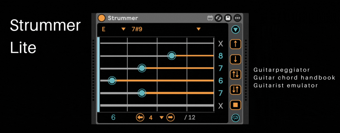 | Description: | Guitarpeggiator, guitar chord handbook, guitar player emulator ––––– Strummer is designed to help you get guitar voicing and playing into your music. 🎹 MIDI chord in –> 💻 Chord diagram on screen –> 🎶 MIDI notes out 🎧 Plays with MIDI from all sources Chordographer works with both MIDI input from an external device and MIDI from pre-existing clips. 🤖 Knows loads of chords Thanks to Zoltán Szabó's chord database on GitHub, Chordographer knows 69782 chord shapes, including jazz chords, slash chords, and multiple voicings. 🧮 Guitarpeggiator Strum rate and note sustain both sync with project tempo, turning the plugin into an arpeggiator that plays along just like your very own robot guitarist would. 🎸 Play along yourself See ready-to-play chord diagrams for all your MIDI clips, helping you add your own layers of real guitar. ––––– Strummer Lite is limited to: 🎸 Up to 5 variations for each chord 🎸 All the "cowboy chords": • Major • Minor • 5 • Dominant 7 ––––– Get the full version at https://davidmcf.gumroad.com/l/strummer with: 🎸 69782 individual voicings 🎸 Slash chords 🎸 Up to 50 variations for each chord 🎸Many, many, many more chords ––––– Made by David McFarlane at Weather Systems https://weathersystems.carrd.co https://instagram.com/weathersystems_ Original concept from Scott Morris |