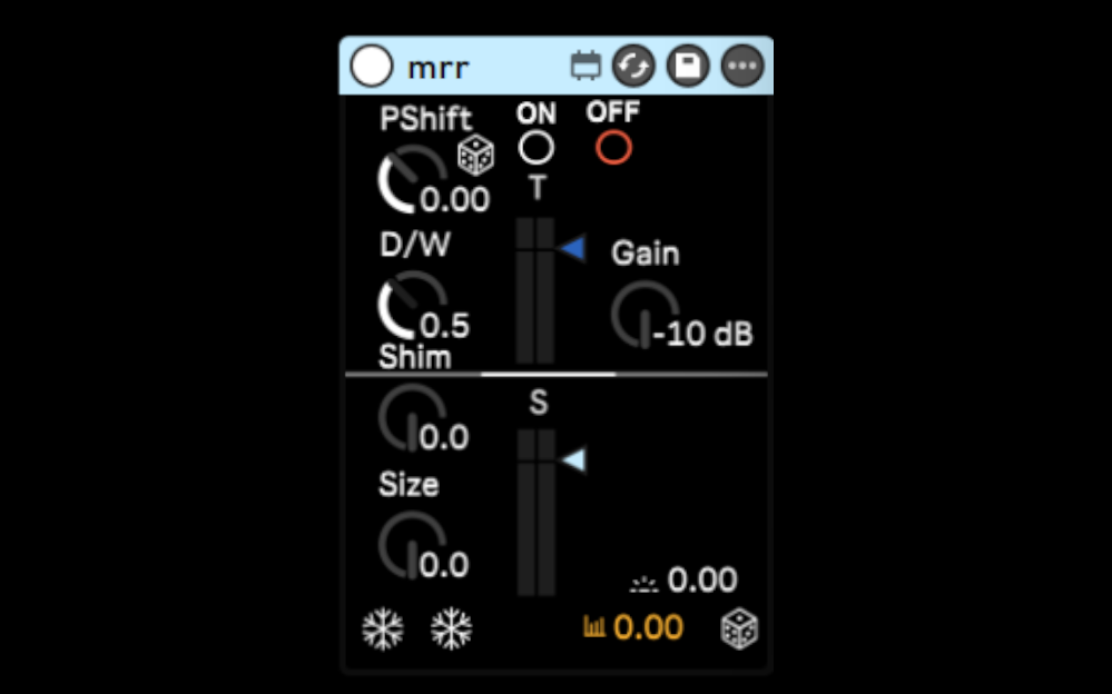 | Description: | mrr is reverb device with Shimmer and Tides Effect.use ableton dsp this device is build for learning about Max,it's be have some issues .freeze function can make highest volume with some reason .too heavy cpu used .on/off botton animation effect delayed. need be test any suggestion and modify be welcome. |