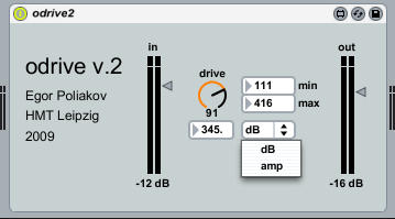 | Description: | Simple overdrive Plugin based on "clip~"-object from max/msp. You can use dB or amp value to overdrive and set free the control limits of the drive dial (very useful for midi-controlling). All plugin settings will be 100% saved with your project. |