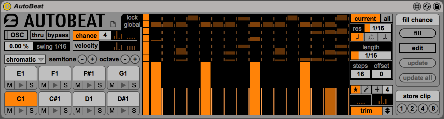For me in the field of maxforlive midi devices Autobeat is the most flexible and creative of all I know so far with its innovative system of random probabilities and its three amazing modes.
