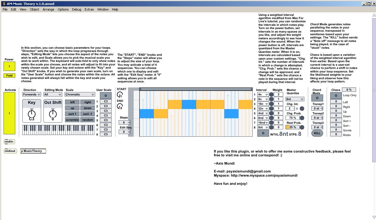 Hey AxisMundi. Is it possible to make a standalone of just the scale section for incoming midi messages. yours seems to be much better than the default Ableton one and i have an external midi sequencer i would like to control with your scale section. i have already tried seperating yours with no luck so far. it keeps on hitting chords instead of single notes. cheers.
