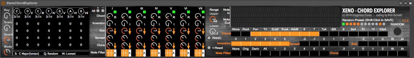 | Description: | "Xeno - Chord Explorer" is a whole new take on chord generation. I tried out quite a few different chord generators and wanted something that build chords in key, but, allowed you to select different chords relative to the key position in the scale, anywhere on the keyboard range. Also, I wanted the ability to make those chords fuller across the note range in different ways and have a powerful randomize feature for exploring new chords in a progression (or arp pattern) I am working on. A fully detailed explanation of all features can be found at the URL listed for more information. Enjoy! |
