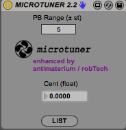 | Description: | 2.2 ======================= New in 2.2: - under certain conditions settings have not been restored, correct tuning only after "touching" PB range, this is fixed now - furthermore if you load the saved set it will autograb the saved cent value, so you dont have to resend the value.... - you now can also pitchbend your instrument without loosing value ======================= Thanks for donating. BTC Address: 13fPZc55jJWfJhe4X57ebKS1jHtXrZmYX5 Exclusive for supporters in 2.3 - Push support (only Live 9) - Compatibility issues with Max 7 resolved. Thanks for supporting. ||| http://antimaterium.de ||| --- A enhanced Version of PHY6's inital version of microtuner (http://www.maxforlive.com/library/device/1758/microtuner THX to PHY6!) , inspired by the requirements of antimaterium: - moving pitchbend wheel doesn't affect the selected tuning - Parameters (PB Range and Cent) are stored with the live set - a warning message appears if the PB range is not sufficient for the desired Cent-Detune Original: Name/Version: Microtuner 1.0 Author: | PHY6 | Description: This device tunes your vsti/au's or Ableton instruments to different tuning. All the instrument needs to get it working, is a pitchbend control and a set range for the pitchbend. Set the PB range in your synth to match the range in the device and you're set ! So if you want to tune your instruments to 432hz, set the PB range to match that of your synth. And in the box below, the cents (float), enter -31,766. Now the instrument is set to 432hz. Hz to Cents converter : http://www.sengpielaudio.com/calculator-centsratio.htm Thanks to broc from the Ableton forums. |