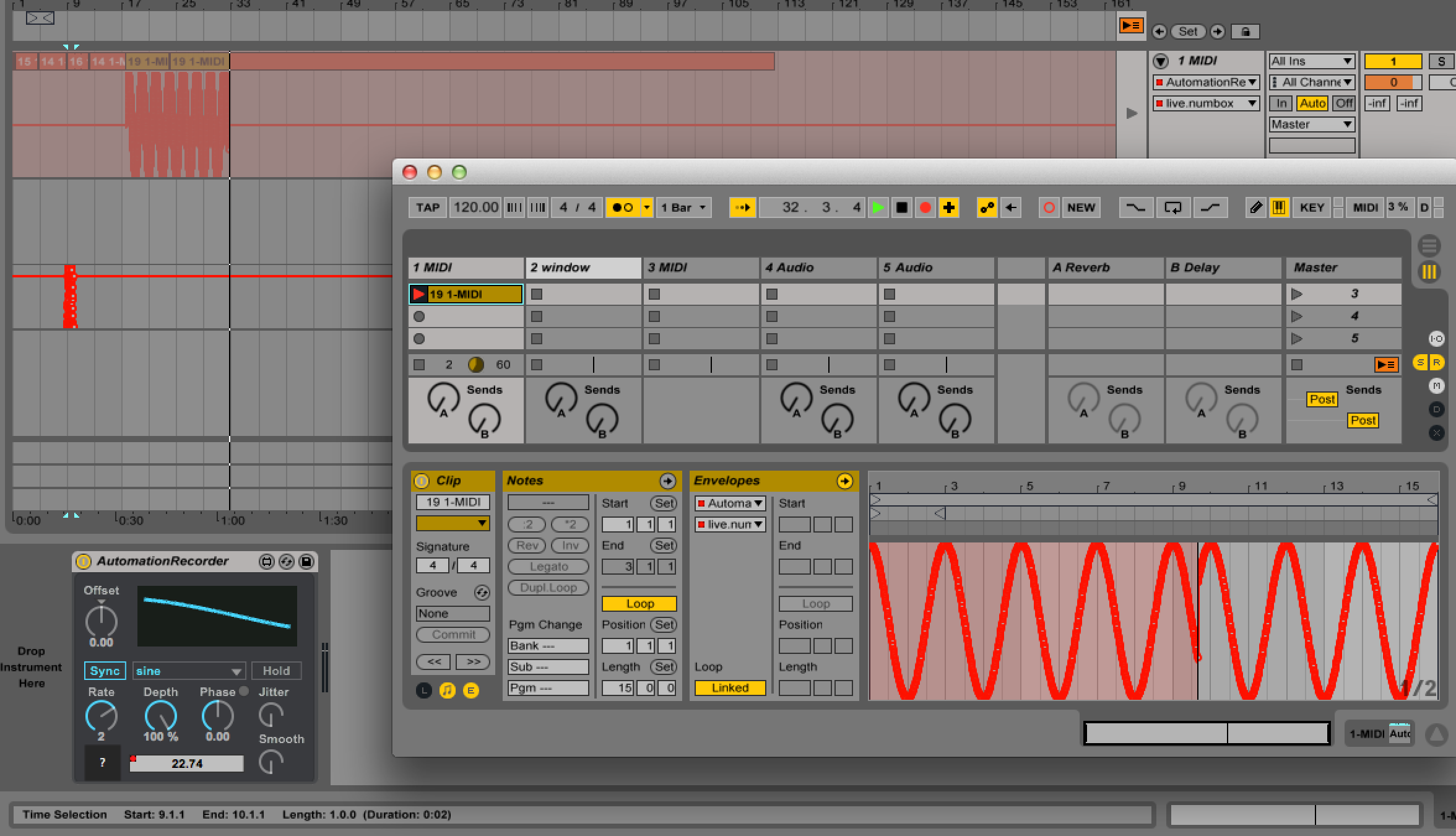 | Description: | NEW VERSION >>http://www.maxforlive.com/library/device/2657/automationrecorder Simple device that records its built in LFO output into an automation envelope, that can then be copy and pasted onto whatever you want. Please report bugs and feel free to suggest features! Note: Be sure to enable "Automation Arm". 9/9/14 - Update 1.3: -Fixed problem with the device flooding Live's undo buffer. :) 8/22/14 - Update 1.2: -Fixed font issues with the about box. -Minor bug fixes. -Device is now properly frozen for distribution. |