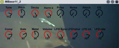 | Description: | Dear all, this is just a simple hyperbasic utility for the excellent MBase11 bassdrum module by Jomox, that would allow you to tweak all parameters from an external controller, and not be limitated by the one and only option on the box itself. It is also really nice to integrate the parameter controllers within the M4L environment, with added complex LFOs, sequenced parameters or within a rack chain loaded with effects that could modify the mbase audio return, etc... I have used the so so usefull SubtleSof's MidiPipe to get rid of the 119 CCs parameters limitation in Live. Alongside with the device, I will sugest users to download MidiPipe, and possibly for help screen captures of a dedicated pipe configuration, as well as a snapshot of my live set-up. Those picture files are zipped and available from the adress below. This has been tested very quickly between 2 planes, so it is far from being free of bugs ! I have intentionnaly limited the range of some knobs after I noted some strange data jumps in the drumbox when values are set to their extreme. Please update ! |