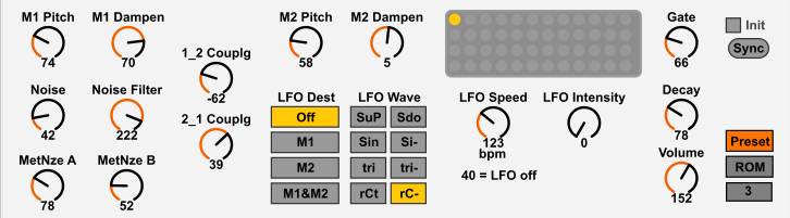 | Description: | MIDI controller for the JoMoX M.Brane11 (MBrane). Please note that most parameters have 256 steps but there are some that do not have the MSB exposed (e.g. LFO Intensity) allowing only 128 steps via midi control. Some midi controllers send values 0-127 (e.g. Push) and will skip every second value. For finer control use the mouse or a midi controller with higher resolution. I tried to group the GUI elements logically according to the internal signal flow described in the M.Brane11 manual. Also, the order of the automapped parameters should be ok but you can change it by adjusting the dials "Automapping Index". Credits to hangarsliquides/cpolcyn/Xstaassen. I reused work they did on MBase11 controllers. Hope you like it, please let me know if there is something to adjust. http://jomox.de/upload/manuals/MBrane11_E.pdf |