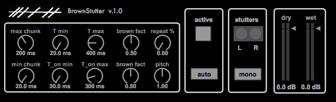 | Description: | A Stutter/beat repeater effect driven by a brownian rhythm. With AUTO mode, mono/stereo mode, pitch shift, repeat... Uses the RTC-lib by KarlHeinz Essl: www.essl.at/works/rtc.html |