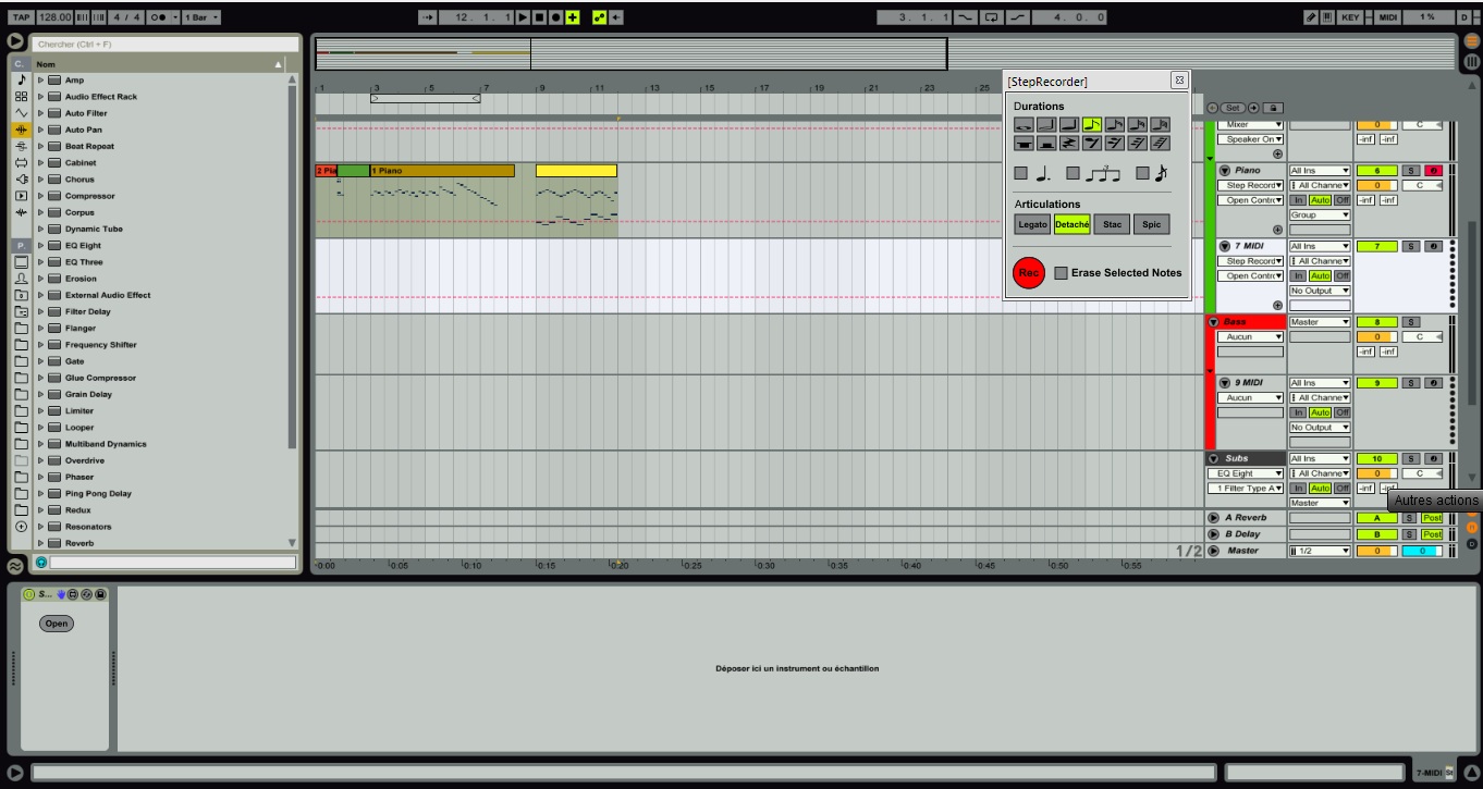 | Description: | A simple step recorder. A master device and a slave are included. Insert the master device on any Midi track. Insert the slave device on any other Midi track if you want to monitor the track's Instrument. v1.1 : various bug fixes. v1.2 : duration's shortcuts ("+" to switch between notes and rests) fixed. |