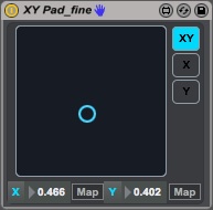 | Description: | This is a modification of Ableton Live 9's stock XY Pad that increases the resolution of parameter control allowing for finer/more detailed automation of mapped parameters. Also, clicking the X or Y to the left of the numeric value will make that parameter jump to 0.5. I'm currently looking for someone who can help improve this by adding the ability to unmap/clear mapped parameters. I haven't had the time to look into that, but would really like to have that ability without needing to either map some other parameter, or delete & add the device on a track again. So please contact me if you are able to do so. Thanks! |