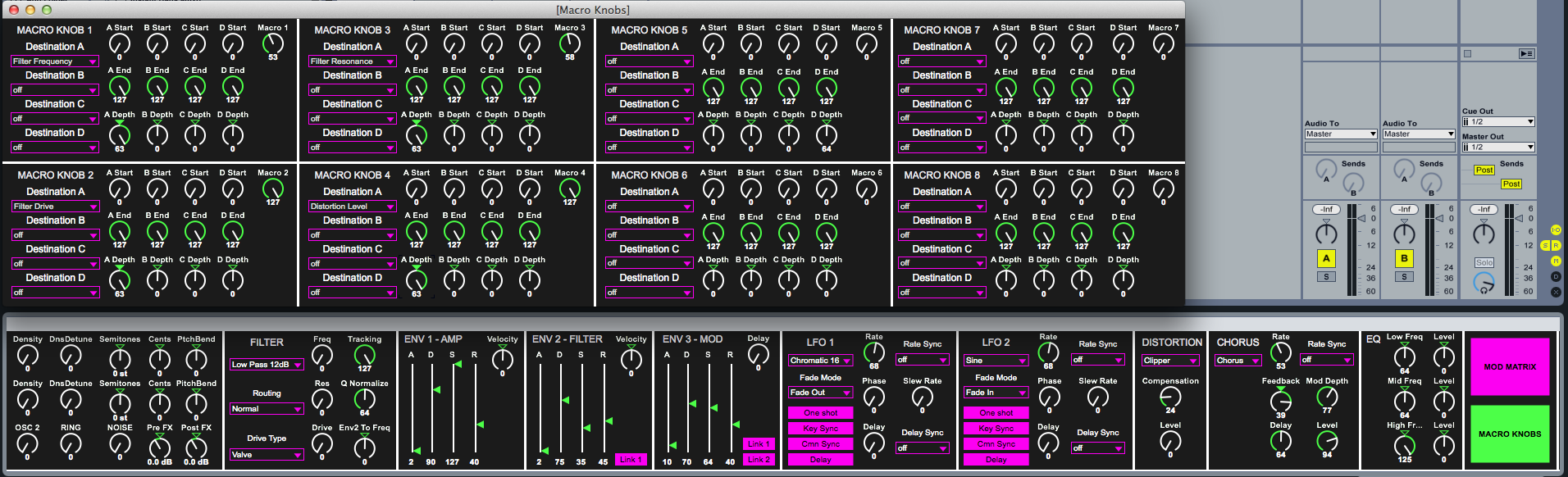 I think all of the "tik tok tuk" sends should probably have a "---" in front them. That way, I can have one of these on one track for "Synth 1" and another one of these on another track for "synth 2".
