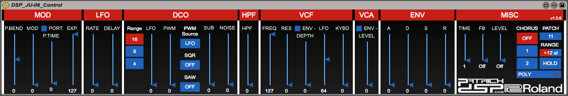 | Name | Version: | DSP Roland JU-06 Control 1.0.6 |