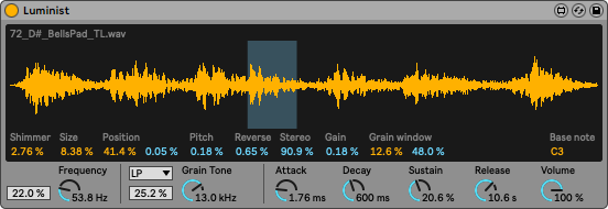 | Description: | Luminist is a sample based granular ambience generator, designed to create unexpected, organic and evolving background textures. You can automate and internally randomise almost every parameter. https://www.youtube.com/watch?v=cv9oQiBnAiU Version History : 2.o1 - Click on the device logo now shows numbers instead of sliders. 2.o2 - Updated to Live 10. (Important! If you're still using Live 9, please, stick with the old version! There are major UI changes in Live 10, these will look ugly under 9) 2.o3 - user request : full MIDI mapping 2.04 - preset save and load implemented (incl. sample paths!) 2.o5 - Ableton banks support added for Push 2.o6 - save/load bug-fix 2.o7 - minor UI fix 3.oo - redesigned UI, easier to use, easier to see and understand, fixed a few minor errors 3.o1 - Apple silicon check 3.o2 - dynamic UI 3.o3 - Live 12 compatibility check |