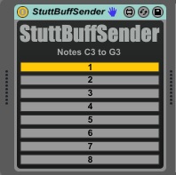 | Description: | This device send notes to up 8 BuffStutt and trigger the stutt buttons Put it on midi track, choose one of 8 targets, you can control up to 8 Buffstutt device. And set up the corresponding receiver on Buffstutt . Notes are C3 to G3. Buffstutt is here: http://www.maxforlive.com/library/device/3841/stuttbuff |