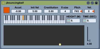 | Description: | Modelling the effect of bouncing ball. Based on the effect by aminoplacid(http://www.maxforlive.com/library/device.php?id=77). The idea seemed to be very interesting but the latency made this effect unusable live. I tried to modify this effect. I used phasor instead of metro and jitter opengl instead of lcd. The latency seems to be lower then in the original. Hope you will find this effect useful. |