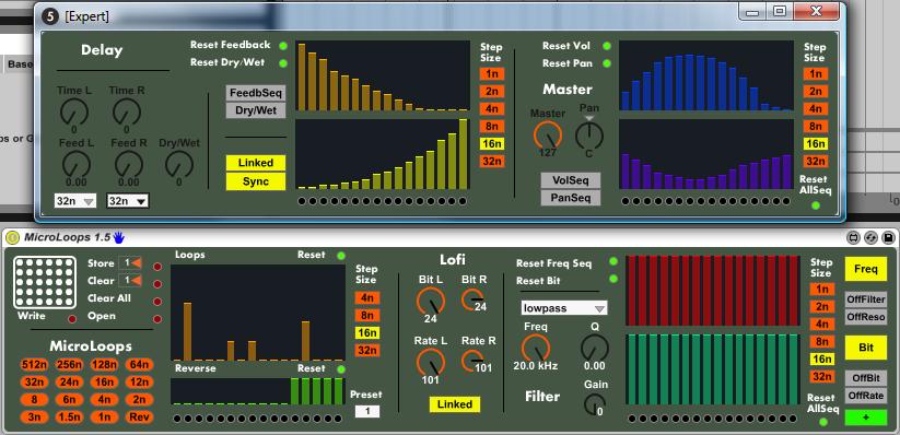 | Description: | Simple Micro loops with sequencer and presets. Learn the buttons loops with controller. You can press some microloops buttons at the same time (with controller or automation in live) but if you release one Button, all microloops Are stopped. Reverse work only for microloops not for the playback. For Store, if you ave a problem with button "store" you can "shift and click" on preset. You can automated preset in live. Enjoy! (ps:It is my first audio patch, be indulgent and escuses for my english.) :) 0.6: some corrections of preset Automation 1.0: I add filter and Lofi + Seq for them. 1.0.1: some corrections. 1.1: I add Resonance ant Bit sequencer 1.1.1: Bug menu Filter Fixed 1.5 : i add Delay and Master volume, pan and Sequencer for them 1.5.1 : The volume was lower than the original volume of the track, i corrected this. |