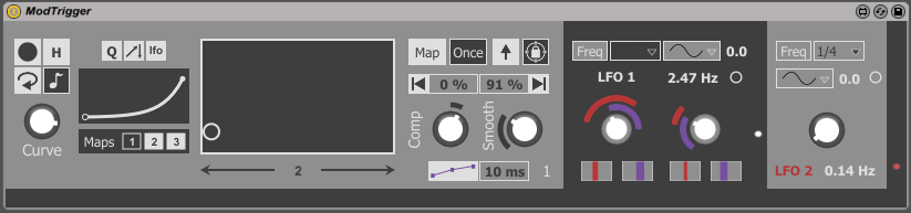 | Description: | ModTrigger is a modulation device which connects to the Live API to control parameters using an envelope, which can also modulated by 2 LFOs. The device was originally designed to create a riser which can be triggered in a live setting, but can also be used in other ways. The device can now modulate 3 separate parameters, each with its own modulation range which can also be inverted. The device features Massive-style modulation rings. Features include loop mode, MIDI note trigger, frequency modulated LFO modulation, envelope curve, quantize, and LFO through mode. Documentation is included with the device. For example, I can dial in a rising envelope of 8 bars length and modulate the output with a rhythmic LFO to add some dynamism to it. Then I can map another parameter to decrease with the envelope. This is a flexible device which can achieve a number of multi-mapped modulation effects all set by a single trigger. https://vimeo.com/225083969 |