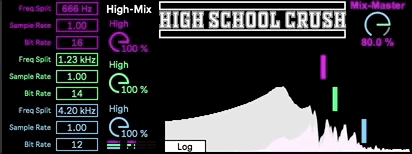 | Description: | High School Crush 1.1 - the de-rezzing audio mangler’s dream; a triple parallel bit crusher/downsampler with crossover wet/dry mixing. What is it: High School Crush recreates the feeling of trying to recall hazy infatuations with a triple bit crushing/downsampling onslaught of nostalgia-inducing audio corruption. What makes this special is that each of the parallel effects has a crossover filter for mixing the dry signal in or out of the mix. Why would you want all this junk? Well, funny I should postulate you asking. With “redux” style effects, one of the charms and problems alike is the resonant harmonics that you sometimes get at given sample rates. While those overtones have their usage, the harsh aliasing adds a distinctly digital sound. My goal was to do accomplish two things: -Allow for parallel sample rates to be set to slightly different levels to make the overtones less apparently resonant. -Allow for more of the dry signal to come through for the high end to create a warmer and less digital tone. Controls: As mentioned, there are three parallel effects, each color coded. Naturally, there’s a bit rate and sample rate option for each. There’s also a Freq Split number box where you can define the crossover filter’s frequency. Under the High Mix text, there’s a wet/dry control for effect on the frequency above the Freq Split. (Hidden secret: you can click the High Mix text and dial in a wet/dry mix for the lows, too.) There’s also a dial for the master control of the overall mix. The spectroscope shows the dry signal with the white display. The pink signal behind it shows the signal for the highs at 100% wet, that way you can get a sense of what the overtones look like with the effect all the way up, and you can kind of tailor you mix with that as a reference. The three bars represent the relative Freq Split points in relation to the spectroscope. You can change the display from linear to logarithmic too, if that’s your thing. Other: Because of the nature of crossover filters, there’s a little bit of volume that can be lost when they’re applied. I tried to set it close to the appropriate volume, but if you find that you need to refine it further, there’s a barely-visible X-looking toggle button next to the pink mix dial. Click that and you can tweak the individual effect line volumes. Bonus: If you really want to ramp up the audile nostalgia factor, scope out the High School Crush’s sister patch, College Dropout. I just revised it, and I gotta admit… I’m kind of proud of how well they pair with one another. Hit me up if you have any ideas to improve the patch or if you have some other general questions. Keep it fresh and keep it free. ♡ ♡ ♡ Special shoutout to ELPHNT/Tom for graciously showing this patch in his excellent Max for Live miniseries on his YouTube channel: https://youtu.be/RJIX-eBksCU Check it out. There are a handful of other videos there as well, all featuring even cooler patches by more impressive M4L devs. ♡ ♡ ♡ |