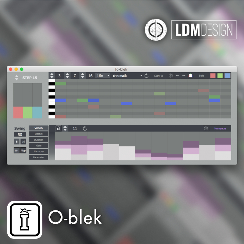 | Description: | O-blek is a stochastic sequencer with individual length options to offset and produce dynamic ever- changing patterns easily. By setting the probability at each step of which of 3 sequences are played from, combined with separate sequence lengths for velocity, octave shift, note length, gate, harmony and 2 set parameters the result is controlled chaos. Easily set parts of the sequence to be fixed, and other parts directed by probability. PIANO ROLL The piano roll works much like the one in Ableton, you simply click the mouse to add or remove notes. This is essentially a mono sequencer so only one note can be placed in each step, although there are other ways to create harmony shown later. If a scale is set, as above, then the piano roll will display the octaves with a darker gray colour. If you hold shift and click any step, this will not change the note, but will select the step in the probability section to the left. Also, the note value will display to the bottom right of the piano roll for wherever the mouse is hovering. PROBABILITY This section is essentially a Markov node to set the probability of which sequence will be played at each step. The step can be selected at the top, or by holding shift and clicking the desired step in the piano roll. The sliders represent what % of probability each sequencer has of playing, so as you change one, the others will also change to reflect the true probability in proportion to the other sliders. This allows for a clear visual indicator of real probability values. ELEMENT SEQUENCERS Here there are sequencers for 6 elements other than the note value set in the piano roll. Select which element to edit by clicking the tab on the left. The value for any element is displayed to the bottom right of the sequencer. Each sequencer is by default locked to the piano roll. This means it has the same number of steps and will also play in the same direction as set for the piano roll. If this is unlocked then the sequence can have a different number of steps and its own individual direction of play. VELOCITY – The light gray bars show the velocity level for each step. If the humanize button is clicked then you can also change the randomization amount relative to the set velocity level, shown with a purple rectangle. You can also change this by holding shift and using the mouse. This way you can have subtle variations or completely different velocity levels each time. OCTAVE – The octave shift can be set +/- 3 octaves from the note set in the piano roll. DURATION – The note length for each step can be set here separately from the piano roll. The values are from 1/8 of a step to 4 steps. This will allow further degrees of variation in your sequences. GATE – The gate sets whether that step in the sequence will play at all, so is either open or closed. Like all the other elements, the sequence length and play direction can be set individually for more variation. HARMONY – Two extra notes can be triggered to create chords, here you can see one note in green and the other pink. The values are set in semitones relative to the original note for that step, up to +12. By dealing with polyphony in this way, the extra notes can again be offset in sequence length from the original piano roll. PARAMETER – This section allows you to sequence 2 parameters which you can assign to anything mappable in Live. Click on either One or Two, then click the Map button that appears on the left, then click any parameter in Live. The parameter value changes are set with smoothing relative to the step size, so the value changes will always be smooth from one step to the next. On the left the parameter can also be turned on and off. SWING – You can set a groove amount to all the sequencing, and the timing to either 8th note or 16th. |