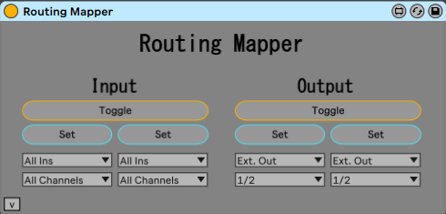 | Description: | Video: https://www.youtube.com/watch?v=prgwnn1Fymw The Routing Mapper is a Max for Live device that allows you to Key/MIDI map changes to a track's input/output routings. It operates on whichever track it is currently on. To use, simply select the input/output routings on the device, and Key/MIDI map the button You can optionally use "toggle" button to use 1 Key/MIDI note to switch between the two routings. Notes: When changing audio routings, there may be a brief audio dropout or slight pop. Behavior may differ based on a whole range of factors, all the way down to your sound card and processing speed. Just keep this in mind if using it for trigger tracking, or any situation where changes may need to happen at a precise moment during live performance. If you are changing this device's drop down menus while audio is playing back, you may experience a short MIDI/Audio dropout. Becauseeee, to accurately scan for sub routings, I had to do a dirty little hack where I quickly toggled the routing state from it's current state to the state selected by the user, grab the data, then back to where it was. This device will also not work on the Master Track. The Master Track's outputs are unavailable through the API (as of Max 8). A workaround is to send master audio to an audio track and direct audio that way. Update 5/18/21: Updated the color scheme to look like more like an Ableton stock device. |