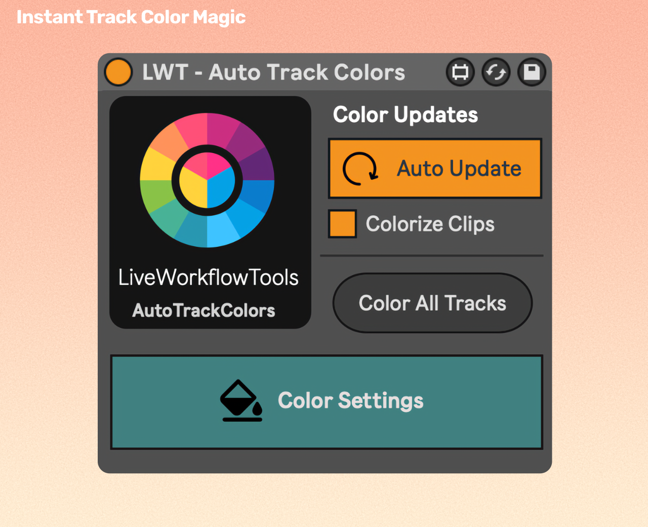 Name your tracks once. Auto Track Colors matches your keywords and instantly color-codes tracks and clips in Ableton Live.