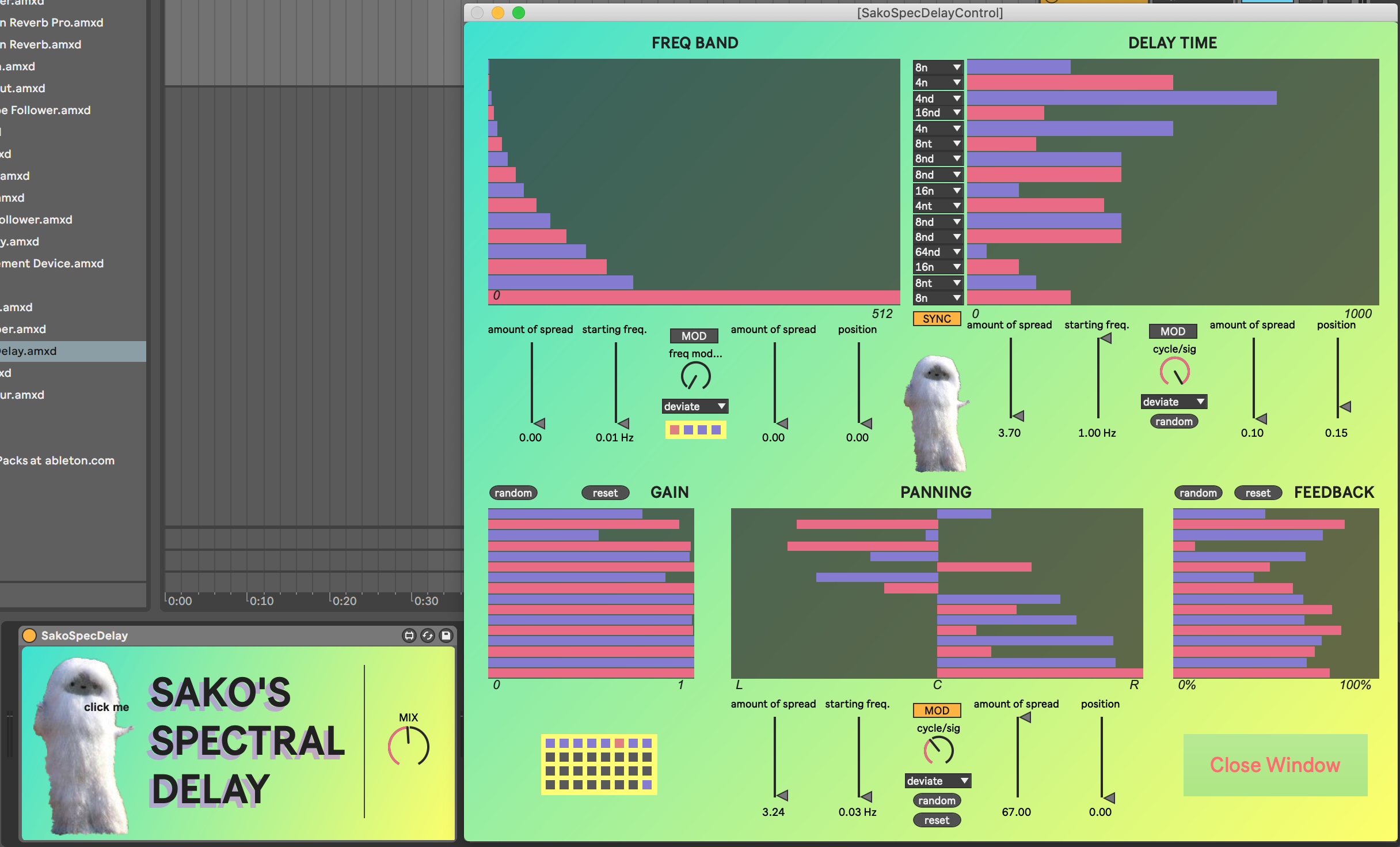 | Description: | A 16-band spectral delay with clockable delay times and complex modulation. |